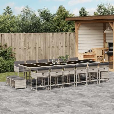 van 17-delige Tuinset met kussens poly rattan lichtgrijs