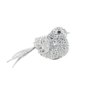 1x stuks decoratie vogels op clip glitter zilver 12 cm
