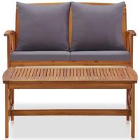 De 2-delige houten meubelset, bestaande uit 1 bankje en 1 salontafel, geeft een vintage uitstraling aan en is speciaal ontworpen voor je tuin, terras of andere buitenruimte! De tuinmeubelset heeft een massief acaciahouten constructie met olie-afwerking, waardoor hij stabiel en duurzaam is. Dankzij het massief houten tafelblad met gelat ontwerp biedt de salontafel ruimte om snacks, fruitmanden, decoratieartikelen en andere benodigdheden op te zetten. De zitkussens en rugkussens maken het bankje comfortabel om op te zitten. De rugleuning en de armleuningen bieden extra zitcomfort. Zowel de tafel als het bankje hebben dubbel gekruiste zijkanten. Belangrijke opmerking: de kleuren en nerven variëren per stuk, waardoor elk meubelstuk uniek is. De levering is willekeurig.