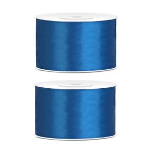 2x hobby/decoratie satijnen sierlint in de kleur Blauw. Satijnlint/sierlint op rol. Materiaal: polyester met satijnlook. Formaat lint: 3,8 cm/38 mm breed, in totaal 25 meter lang. Hobby en knutselen materiaal benodigdheden decoratie lint voor het maken van decoraties of het verpakken van cadeautjes. Cadeauverpakkingen cadeaulint/ribbon satijn verpa...