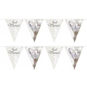Folat Just Married vlaggenlijn - 4x stuks - 10 meter - plastic - Bruiloft decoraties - huwelijk vers