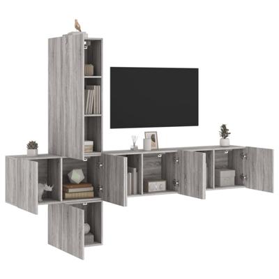 6-delige Tv-wandmeubelset met LED grijs sonoma eikenkleurig