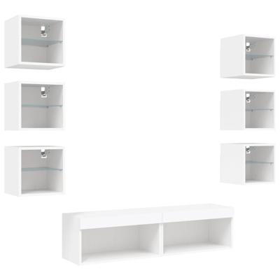 7-delige Tv-wandmeubelset met LED-verlichting bewerkt hout wit