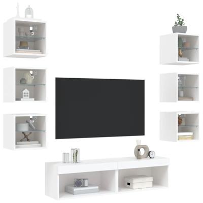 8-delige Tv-wandmeubelset met LED-verlichting bewerkt hout wit