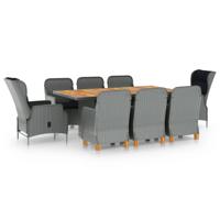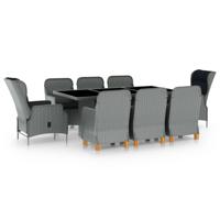 van 9-delige Tuinset met kussens poly rattan lichtgrijs