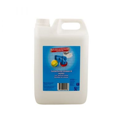 Accuwater/Demiwater - gedemineraliseerd water - fles 5 liter- water zonder zoutenAccuwater/Demiwater - gedemineraliseerd water(gefilterd water) - fles van 5 liter. Uitstekend water om te gebruiken als o.a. navulmiddel voor accu's. Daarnaast kan het ook gebruikt worden voor diverse andere doeleinden zoals koelsystemen, ruitensproeierreservoir, stoomstrijkijzers, ramen wassen, etc. Inhoud: 5 liter. Bij demiwater zijn de zouten eruit verwijderd.9,99