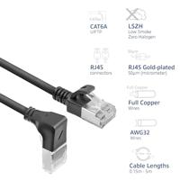 ACT Zwarte 0.5 meter U/FTP CAT6A LSZH Slimline patchkabel met RJ45 connectoren recht naar 90° haaks