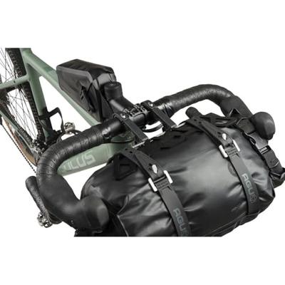 AGU Stuurtas Venture Extreme Pro - Zwart. Deze waterdichte stuurtas mag niet ontbreken tijdens jouw bikepacking avontuur. De combinatie van een sterke, stevige aluminium holster met daarin een waterdichte drybag biedt ruime opbergmogelijkheid en flexibiliteit. Na het fietsen kan de holster op de fiets blijven, terwijl je de drybag met daarin alle spullen makkelijk los haalt om mee te nemen. Met het stoere uiterlijk is deze tas een echte must-have voor iedere lange rit. * De holster is gemaakt van aluminium. De tas zelf is gemaakt van sterk, waterdicht en duurzaam materiaal. * Voordelen van het harnas zijn dat de tas niet meer rammelt en dat het de lak niet kan beschadigen. Daarnaast ziet het er clean uit. * Om alle spullen waterdicht en compact op te bergen stop je ze in de drybag. Deze is makkelijk en snel los uit het holster. * De afmeting van de tas is 30 x 18 x 18 centimeter, de inhoud 9,6 liter en het gewicht is 420 gram.