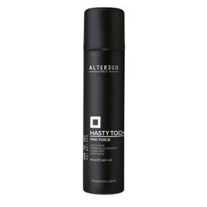 Een stevige haarspray die het haar meer body geeft en de hele dag in model houdt. Alter Ego Hasty Too Mini Force is een haarlak met een stevige hold die 24 uur houdt. De haarspray beschermt, hydrateert en herstelt de elasticiteit van het haar. De haarspray zorgt ervoor dat fijn haar meer body krijgt. Het haar blijft soepel en makkelijk handelbaar. De haarspray is geschikt voor alle haartypes. Belangrijke kenmerken: Extra stevige hold Hydrateert Herstelt elasticiteit Gebruik: Spray na het stylen over het haar om het kapsel te fixeren. Resultaat: Alter Ego Hasty Too Mini Force houdt het haar perfect in model. Het haar heeft beweging, volume en glans.