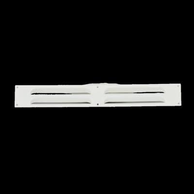 Schoepenrooster vervaardigd van aluminium, met omgezette rand, opbouw. Buitenmaat rooster: (L x H) 300 x 40mm. kleur is WIT RAL9010. Toepassing: Als buitenrooster, regeninslagwerend, voor toe- en afvoer van lucht. Voor bijbehorende afsluitbare (binnen)roosters: Afsluitbare schuifroosters () Dit rooster: * is voorzien van hoogwaardige poedercoating (WIT RAL9010) * heeft verzonken bevestigingsgaten Ø 4mm. * gewicht : 40gr * LD cm² : 25 Drukverschil> 1 Pa 2 Pa 5 Pa 10 Pa 20 Pa 40 Pa 60 Pa dm3/s 2 3 5 7 9 13 16 m3/u 7 11 18 25 32 47 58
