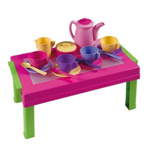 Speeltafel met theeservies. Serveer een lekker kopje thee op tafel. Klap de tafel als je klaar bent in en berg je servies op in de tafel.