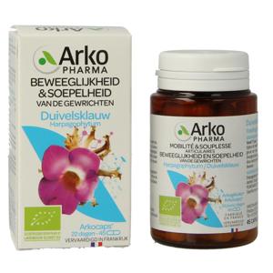 Arkocaps Duivelsklauw bio Kruidenpreparaat - Voor het behoud van soepele gewrichten* * = Gezondheidsclaim in afwachting van goedkeuring door de Europese Commissie Samenstelling per dagdosering van 2 capsules: Duivelsklauw (Harpagophytum) wortelpoeder 826mg - waarvan harpagosiden 12mg Ingrediënten BIO Duivelsklauw (Harpagophytum) wortelpoeder (Harpagophytum procumbens, Harpagophytum zeyheri), emulgator: BIO Zonnebloem lecithine, capsule 100% plantaardig: hydroxypropylmethylcellulose. Gebruik Vanaf 15 jaar. 1 capsule 's morgens en 's avonds in te nemen tijdens de maaltijd met een groot glas water. Niet gebruiken bij maag- of darmzweren of galstenen. Niet aanbevolen tijdens zwangerschap en borstvoeding. Bewaren Donker, koel en droog bewaren. Fabrikant/distributeur Arkopharma Nederland B.V. Postbus 10255 1301 AG Almere Dit product is een voedingssupplement. Aanbevolen dosering niet overschrijden. Een gevarieerde, evenwichtige voeding en een gezonde levensstijl zijn belangrijk. Een voedings…