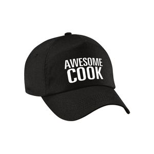 Awesome cook pet / cap zwart voor dames en heren. Op deze zwarte baseball cap staat in witte letters: awesome cook. Een leuk cadeau voor een geweldige kok! Bijvoorbeeld voor een verjaardag, of gewoon zomaar. Materiaal: 65% polyester / 35% katoen. Klittenbandsluiting. Let op: dit is een verkleedaccessoire voor volwassenen, geen speelgoed.