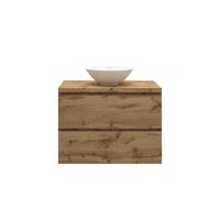 Badkamermeubelset Gliss Zeus 140 cm Rustiek Eiken Met Waskom Deze Zeus badkamermeubelset van Gliss Design zal echt een pronkstuk zijn in uw badkamer. Het meubel is gemaakt van Melamine, waardoor deze perfect te gebruiken is in een natte ruimte. Melamine staat bekend om de onbreekbare en krasvrije eigenschappen. Daarnaast is het harde en gladde oppervlak gemakkelijk te onderhouden doordat vuil en bacterien geen kans krijgen om zicht te hechten. Het doel van Gliss is dan ook om luxe en kwaliteit te creëren voor een betaalbare prijs. Alle meubels van Gliss bevatten lades die voorzien zijn van het Blum Blumotion softclose lade systeem. Deze scharnieren van Blum zorgen voor een naadloze softclose oplossing die bijna geen ruimte inneemt in uw lades. De badkamermeubels uit de Zeus serie zijn volledig greep loos. Dit benadrukt het strakke design van de kast. Deze set bestaat in de basis uit een onderkast, front, topplaat en twee Gliss Leto waskommen in glanzend wit met een diameter van 40 cm (4C040D3). Tegen een kleine meerprijs kunt u de Leto waskom vervangen voor de Uloka waskom, gemaakt van beton (4E040ZA). Deze waskom zorgt voor een stoere en robuuste uitstraling. Daarnaast kunt u er voor kiezen om tegen een meerprijs de topplaat te vervangen voor een mat witte of hoogglans witte variant gemaakt van MDF. Optioneel kunt u voor een kleine meerprijs ook een clickwaste, sifon en bijpassende spiegel toevoegen aan deze set. Verder kunt u een kraan naar keuze mee bestellen om de stijl te creëren die u voor ogen heeft. Kies bijvoorbeeld voor een mooie inbouwkraan. Deze set heeft een breedte van 140 cm, een diepte van 45.5 cm en een hoogte van 55 cm en bestaat uit twee onderkasten van 70 cm. Let op: De topplaat wordt geleverd zonder afvoer/kraangaten. Dit geeft u de mogelijkheid om zelf te bepalen waar u de waskom plaatst. Daarnaast zorgt dit ervoor dat u de keuze kunt maken om een inbouw kraan te combineren met het meubel. Specificaties Badkamermeubelset Gliss Zeus 140 cm Rustiek Eiken Met Waskom: Hoogte: 55 cm Breedte: 140 cm Diepte: 45.5 cm Materiaal kast: Melamine Materiaal waskom Leto: Cast Marble Materiaal waskom Uloka: Beton Kleur: Rustiek Eiken Softclose: Ja Aantal lades: 4 lades Overloop: Nee Aantal kraangaten: 0 Uitsparing sifon: Ja Incl spiegel: Nee Kolomkast: Nee Verlichting: Nee Fabrieks Garantie: 2 jaar garantie Dikte paneel: 1.8 cm