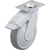 Kunststof zwenkrol Blickle FLOW, roestvrij, kleur zilvergrijs, met vaste regelaar 'stop-fix',wiel met thermoplastisch rubber loopvlak, met polypropyleen wiellichaambehuizing: serie...
