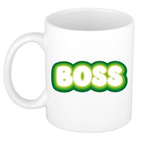Cadeau mok voor baas. Grappige beker bedrukt met de tekst: BOSS. Geef deze leuke mok cadeau bijvoorbeeld met de verjaardag van je baas of gewoon zomaar. De beker is magnetron- en vaatwasmachine bestendig. Materiaal: keramiek. Inhoud: ca. 300 ml. Hoogte: ca. 9,5 cm. Diameter: ca. 8 cm.