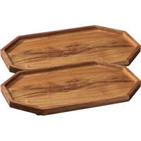 CM serveerschaal/dienblad - 2x - ovaal - zilver - RVS - 40 x 26 x 3 cm - party hapjes/catering schaa