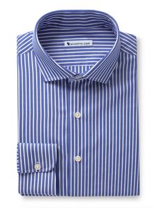 AVELLINO - Gestreepte Popeline koningsblauw heren overhemd - TUFO 4Klassiek passend blauw gestreept poplin overhemd met Napolitaanse boord Dit overhemd is gemaakt van fijn Italiaans popeline katoen, geweven door de beroemde Thomas Mason Mill, en de strakke, elegante look is gebaseerd op modern design en traditioneel maatwerk. Dit luxe overhemd is voorzien van parelmoeren knopen, ronde manchetten en rimpelvrije enkeldraads zijnaden.114,-