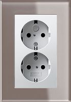 Dubbel stopcontact antraciet met Gira esprit wit glas afdekraam rechte hoeken Voor ovale blauwe of grijze inbouw dozen