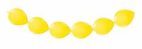 Set van 8 gele knoopballonnen. Knoopballonnen zijn ideaal voor het maken van leuke ballonfiguren, bogen of pilaren. Een knoopballon heeft aan de andere kant van de vultuut nog een extra tuutje. Met dit tuutje kunnen de ballonnen aan elkaar vast worden geknoopt. Deze set van 8 ballonnen vormt een slinger van ongeveer 3 meter.