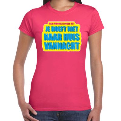Foute party Je hoeft niet naar huis vannacht verkleed t-shirt roze dames - Foute party hits outfit/