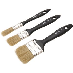 Verfkwasten set van 3x stuks, platte kop. Breedtes:?12/25/50 mm. In de set 1x stuks per breedte.Platte kwasten set voor al uw schilderwerk in huis, kantoor of werkplaats. Zowel geschikt voor verf op waterbasis als op oliebasis. Met echt haar. Schilder/verf/klus materialen.