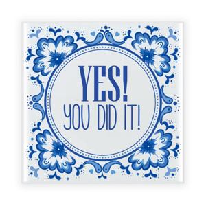 Geslaagd cadeau tegel - YES! You did it! - delfts blauw - keramiek - 15 x 15 cm