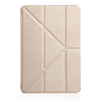 Gierst textuur PU + silica gel volledige dekking lederen draagtas voor iPad mini 2019 met multi-vouwen houder (goud)
