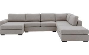 Heerlijk relaxen met grijze hoekbank Lucca. Deze stoffen hoekbank met ligelement biedt volop ruimte voor het hele gezin. Of je nu onderuit wilt zakken tijdens je favoriete serie of gezellig wilt borrelen met vrienden, hoekbank Lucca maakt het allemaal mogelijk. De keerbare kussens en luxafoam vulling zorgen voor een ruim en comfortabel zitmeubel waar je urenlang van geniet.Comfort van hoekbank LuccaLucca biedt een stevig zitcomfort voor een actieve zithouding. De nosagvering in combinatie met de luxafoam vulling zorgt voor een perfecte balans tussen steun en comfort. Na gebruik veren de kussens weer netjes terug in model, zodat je bank er altijd tiptop uitziet. * Oersterk hardhouten frame voor langdurige stevigheid * Nosagvering voor duurzame ondersteuning * Luxafoam vulling die mooi in vorm blijft * Keerbare kussens voor veelzijdig gebruik Stijlvolle details van deze grijze hoekbankLucca heeft een stijlvol landelijke uitstraling met zijn grof geweven grijze stof. De warme, houten poten in zwart maken de sfeer helemaal compleet. Deze U-opstelling met 2,5-zits zonder arm en chaise longue element biedt volop mogelijkheden om je bank naar eigen wens in te delen.De smalle armen geven Lucca een verfijnde uitstraling zonder in te leveren op comfort. Door de vaste bekleding behoudt deze hoekbank zijn strakke vormgeving. Handig om te weten: je kunt ook een losse hocker bestellen voor extra zitruimte. Zet de bank niet in direct zonlicht, dan behoud je de frisse kleur optimaal.Hoekbank Lucca kopenBenieuwd hoe hoekbank Lucca in jouw woonkamer staat? Kom langs in een van onze woonwinkels voor persoonlijk advies van onze interieurspecialisten. Zij helpen je graag bij het maken van de juiste keuze. Heb je je keuze al gemaakt? Dan bestel je Lucca eenvoudig online.Gratis stofstaal van je favoriete hoekbank aanvragen?Bij het kopen van een meubel, is jouw gevoel vaak de doorslaggevende factor. We begrijpen dat je een stof even wilt voelen en in het echt wilt zien, voordat je het artikel online bestelt. Je kunt met een stofstaal thuis bekijken of de kleur past bij jouw bestaande meubels, de muurkleur en de raamdecoratie. Onze gratis stalenservice helpt jou bij de keuze voor je nieuwe woonitem. Je bestelt een stofstaal super eenvoudig!