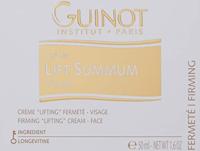 De Guinot Lift Summum Cream is een krachtige verstevigende dagcrème met een opwekkend liftend effect. Speciaal ontwikkeld voor de rijpere huid, helpt deze crème het gezicht er steviger en gelift uit te laten zien. Verrijkt met Duindoorn-extract en Longevitine, ondersteunt het de aanmaak van belangrijke eiwitten die de huidstructuur verbeteren. Deze actieve ingrediënten stimuleren tevens de productie van collageen en elastine, waardoor het verlies van elasticiteit tegen wordt gegaan. De crème-achtige textuur voelt soepel aan op de huid en zorgt voor een fijne verzorging zonder schadelijke stoffen.
