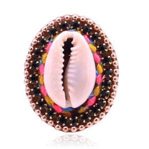 Handgemaakte verstelbare leren Boho ring multicolor met schelp en kristal