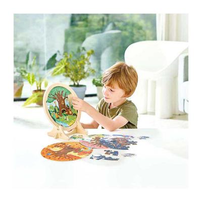 Ontdek hoe de natuur door het jaar heen verandert met deze houten lagenpuzzel '4 Seizoenen'. De puzzel bestaat uit vier ronde lagen, elk met een vrolijke illustratie van een seizoen. In de lente komen bloemen tot bloei, in de zomer is het groen en vol leven, in de herfst vallen de bladeren en in de winter is alles bedekt met sneeuw. Door laag voor laag te puzzelen, leert je kind spelenderwijs over de seizoenen en traint het de fijne motoriek, concentratie en probleemoplossend denken. Voor kinderen vanaf 3 jaar.