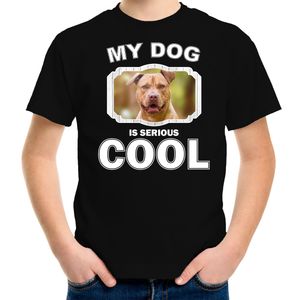Honden liefhebber shirt Staffordshire bull terrier my dog is serious cool zwart voor kinderen