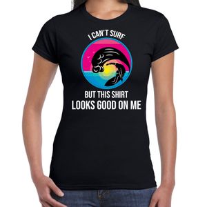 I can not surf but this shirt looks good on me fun tekst t-shirt / shirt zwart voor dames