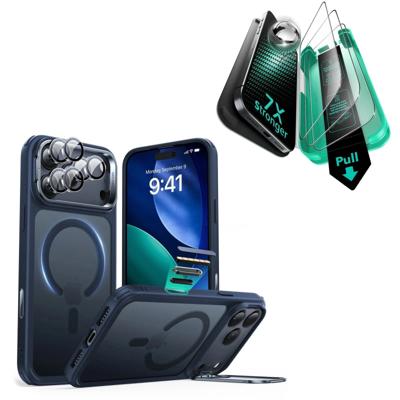 iPhone 17 Pro Max Bundle Classic Hybrid Magnetic Case (Camera Control, Stash Stand) and Armorite Screen Protector - Frosted Blue