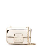 blanc lait cuir de veau bride porté épaule en chaîne détachable logo imprimé sur le devant détails de fronces compartiment principal poche intérieure plaquée patch logo intérieur doublure contrastante finitions en métal doré fermeture à loquet Cette pièce est livrée avec une housse de protection....