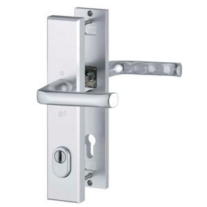 HOPPE London SKG*** veiligheidschild. Massief aluminium inbraakwerend langschild-krukgarnituur pc 72 mm. Met kerntrek beveiliging voor keuken- en tuindeuren. Inclusief Londen deurkruk. Geschikt voor deuren van 38 tot 43 mm Voldoet aan SKG.*** deurkrukken hooghoudveer rechts/links toepasbaar, onderhoudsvrij glijlager Verbinding: HOPPE vast/draaibare profielwisselstift (gatdeel) Doorboorbeveiliging: gehard staal, voor voorstaande cilinderlengte 10-18 mm Schilden: van massief aluminium, buiten steunnokken, binnen zonder Bevestiging: binnen zichtbaar, doorgaand, stalen schroeven M6