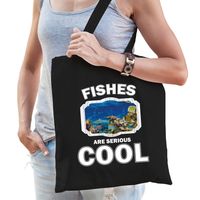 Katoenen tasje fishes are serious cool zwart - vissen/ vis cadeau tas