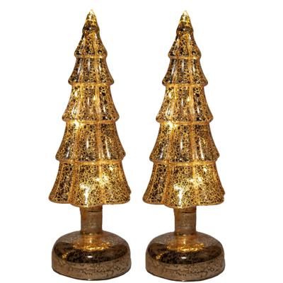 Kerstboom beeldje - 2x - goud - met LED licht - 27 cm - glas - decoratie kerstboompje