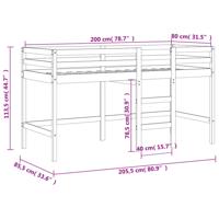 Kinderhoogslaper met gordijnen 80x200 cm grenenhout blauw