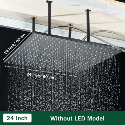 Maak van je badkamer een luxe spa-ervaring met deze innovatieve vierkante LED regendouchekop. De ingebouwde LED-verlichting verandert van kleur afhankelijk van de watertemperatuur - volledig aangedreven door waterdruk, dus geen batterijen nodig!Dankzij de plafondmontage met vier installatiearmen en de ruime rechthoekige vorm geniet je van een brede, ontspannende waterstraal zoals onder een echte regenbui. Gemaakt van hoogwaardig messing en beschikbaar in diverse afwerkingen zoals chroom, zwart en geborsteld nikkel.Belangrijkste kenmerken:Type douchekop: Rechthoekige regendouche - vaste plafondmontageInstallatie: Plafondbevestiging met 4 installatiearmenMateriaal: MessingAansluiting: G1/2” standaard draadWaterinlaat: Warm & koud waterOppervlakteafwerking: Chroom, zwart of geborsteld nikkelStijl: Modern, vierkant ontwerpLED-functie: Verandert automatisch van kleur op basis van watertemperatuurVoeding LED: Waterdruk - geen batterijen nodigSlim apparaat: JaVoordelen:Luxe regenval-effect voor ultieme ontspanningLED-verlichting biedt sfeer én functionele temperatuurindicatieEenvoudige installatie zonder extra voedingDuurzaam en onderhoudsvriendelijk ontwerp2 jaar garantieVoeg direct stijl en technologie toe aan je badkamer met deze unieke plafonddouche. Perfect voor moderne badkamers en voor wie net dat beetje extra comfort en design zoekt. Kleur: 24 Inch LED Douchekop, Geborsteld GEEN LED, Chroom LED, Chroom GEEN LED, 24inch Geen LED, Zwarte LED, Geborsteld goud LED, Zwart GEEN LED, Geborsteld goud zonder LED, Geborstelde LED