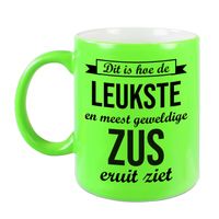 Leukste en meest geweldige zus cadeau koffiemok / theebeker neon geel 330 ml