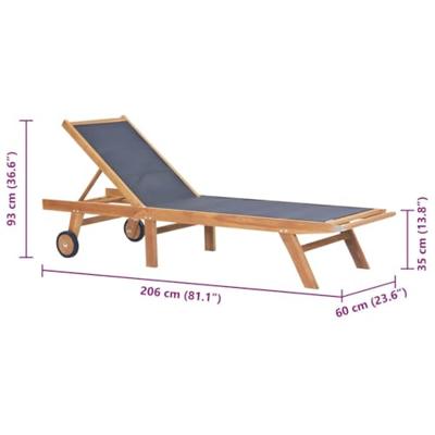 Ligbed inklapbaar met wielen massief teakhout en textileen