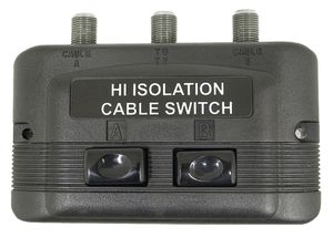 A manual switch with two inputs. The switch was selected input 1 or 2.Aantal ingangen: 2Aantal uitgangen: 1Ingang(en): 2x F-Connector FemaleKleur: GrijsType: PrioriteitenschakelaarType connector: F-connectorUitgang(en): 1x F-Connector Female