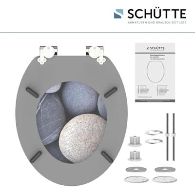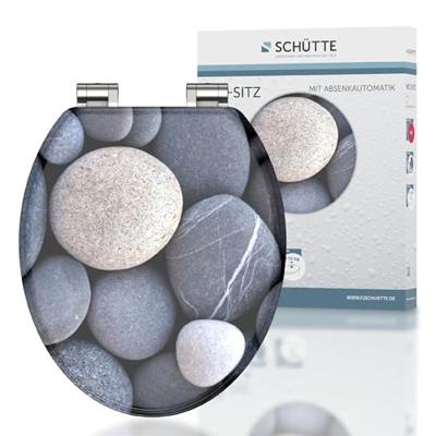MDF WC-bril GREY STONE met soft-close lange levensduur: extreem onbreekbaar en krasbestendig comfort en functie: geruisloos sluiten dankzij de automatische valrem eenvoudig schoon te maken dankzij het gladde oppervlak eenvoudige installatie: compleet bevestigingsmateriaal inbegrepen standaardformaat: geschikt voor alle gangbare WC-potten bedrukt op 3 zijden garantie: 2 jaar