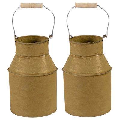 Melkbus plantenpot/bloempot - 2x - zink - oud goud - binnen/buiten - D13 x H20 cm