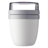 De lunchpot Ellipse van Mepal is één handig product om je lunch of tussendoortje mee te nemen, maar bestaat in feite uit twee delen om de verschillende ingrediënten gescheiden te houden. Zo doe je bijvoorbeeld yoghurt in de onderste container (beker) en muesli of fruit in de bovenste container. De deksel van de onderste container is niet gelijk de bodem van de bovenste container. Beide containers hebben een aparte deksel en blijven daarom schoon. Door middel van een eenvoudige draaibeweging scheid je de twee compartimenten om de ingrediënten te mixen. Supermakkelijk en dé oplossing om geknoei tijdens het mengen