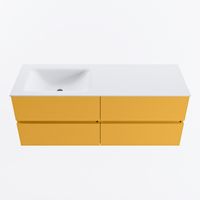 De magnifieke badkamermeubels set VICA is een aanwinst in uw badkamer. Of u kiest voor kleur of een houtlook, een speciale maat badmeubel, wel of geen kraangaten de badkamermeubel set Vica heeft het allemaal. U heeft bij de Vica badkamermeubel set de keuze uit 3 modellen wastafels de CLOUD en de MOON in Solid Surface met de opties de waskom rechts, links, midden of dubbel en wel of geen kraangaten. En de DENIA keramische wastafel met de opties midden en dubbel. De Vica badmeubel set is verkrijgbaar in een ruime keuze standaardmaten van 60 cm t/m 200 cm die per 10 cm oplopen. Het badmeubel Vica is verkrijgbaar in maar liefst 25 kleuren waaronder ook onze speciale kleuren Oro en Plata. Zit uw ideale maat of kleur er niet bij de dan is maatwerk altijd mogelijk. U kunt uw complete badkamer dan ook stijlen met kolomkasten, baden, nissen en accessoires allemaal in dezelfde kleur. Met de Vica badkamermeubel set heeft u een geweldig meubel die uw badkamer compleet maakt. Specificaties badmeubel MONDIAZ VICA CLOUD: Breedte onderkast ca: 100cmHoogte onderkast ca: 50cmDiepte onderkast ca: 45cm Kleur onderkast: OcherBreedte wastafel: 101cmHoogte wastafel: 0,9cm Diepte wastafel: 46cmKleur wastafel: TalcPositie spoelbak: linksMateriaal: Solid Surface Producent: MondiazAntibacterieel: JaMaatwerk mogelijk: JaInclusief sifon: Nee Technische specificaties Klik hier voor de maattekening () Onderhoudstips Algemene richtlijnen voor badkamer meubels. Een badkamermeubel is geschikt voor vochtige ruimtes. Het is wel belangrijk dat er geen direct water/condens langs uw meubel loopt. Een badmeubel kan dan ook tegen vocht maar niet tegen water. De volgende punten zijn belangrijk om zo lang mogelijk plezier van uw badmeubel te hebben. Goed ventileren. Het complete meubel moet worden gekit zoals op de montage video's te zien is.Het meubel niet direct naast of tegenover een douche staat met douchegordijn en/of zonder douche wand. Geen water langs het meubel loopt. Schoonmaak richtlijnen voor badkamer meubels. Uw badkamermeubel kunt u het beste schoonmaken door een sopje te maken met een klein beetje sanitair schoonmaakmiddel geen anti kalk of bijtende producten. Wanneer u te veel schoonmaakmiddel gebruikt krijgt u een doffe glans op het meubel. Dan met een licht vochtige doek zachtjes het meubel schoonmaken en na drogen met een droge doek. Let op met het gebruik van microvezeldoekjes, hierin blijven soms harde steentjes plakken waardoor u krassen kunt krijgen op het meubel. Schoonmaak richtlijnen voor solid surface wastafels. De SOLID SURFACE wastafels van LacronPlus hebben een aantal belangrijke voordelen! Het is bestendig tegen vocht.Heeft een naadloze afwerking. Het heeft geen poriën waar vuil in kan zitten. Het is eenvoudig te reinigen. We kunnen het in elk gewenste maat maken. Let op: de kleur TALC is de door en door solid surface en kan opgeschuurd worden. Alle andere kleuren zijn gespoten en hebben dus een toplaag.