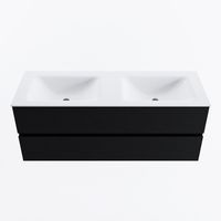 De magnifieke badkamermeubels set VICA is een aanwinst in uw badkamer. Of u kiest voor kleur of een houtlook, een speciale maat badmeubel, wel of geen kraangaten de badkamermeubel set Vica heeft het allemaal. U heeft bij de Vica badkamermeubel set de keuze uit 3 modellen wastafels de CLOUD en de MOON in Solid Surface met de opties de waskom rechts, links, midden of dubbel en wel of geen kraangaten. En de DENIA keramische wastafel met de opties midden en dubbel. De Vica badmeubel set is verkrijgbaar in een ruime keuze standaardmaten van 60 cm t/m 200 cm die per 10 cm oplopen. Het badmeubel Vica is verkrijgbaar in maar liefst 25 kleuren waaronder ook onze speciale kleuren Oro en Plata. Zit uw ideale maat of kleur er niet bij de dan is maatwerk altijd mogelijk. U kunt uw complete badkamer dan ook stijlen met kolomkasten, baden, nissen en accessoires allemaal in dezelfde kleur. Met de Vica badkamermeubel set heeft u een geweldig meubel die uw badkamer compleet maakt. Specificaties badmeubel MONDIAZ VICA CLOUD: Breedte onderkast ca: 130cmHoogte onderkast ca: 50cmDiepte onderkast ca: 45cm Kleur onderkast: CaleBreedte wastafel: 131cmHoogte wastafel: 0,9cm Diepte wastafel: 46cmKleur wastafel: TalcPositie spoelbak: dubbelMateriaal: Solid Surface Producent: MondiazAntibacterieel: JaMaatwerk mogelijk: JaInclusief sifon: Nee Technische specificaties Klik hier voor de maattekening () Onderhoudstips Algemene richtlijnen voor badkamer meubels. Een badkamermeubel is geschikt voor vochtige ruimtes. Het is wel belangrijk dat er geen direct water/condens langs uw meubel loopt. Een badmeubel kan dan ook tegen vocht maar niet tegen water. De volgende punten zijn belangrijk om zo lang mogelijk plezier van uw badmeubel te hebben. Goed ventileren. Het complete meubel moet worden gekit zoals op de montage video's te zien is.Het meubel niet direct naast of tegenover een douche staat met douchegordijn en/of zonder douche wand. Geen water langs het meubel loopt. Schoonmaak richtlijnen voor badkamer meubels. Uw badkamermeubel kunt u het beste schoonmaken door een sopje te maken met een klein beetje sanitair schoonmaakmiddel geen anti kalk of bijtende producten. Wanneer u te veel schoonmaakmiddel gebruikt krijgt u een doffe glans op het meubel. Dan met een licht vochtige doek zachtjes het meubel schoonmaken en na drogen met een droge doek. Let op met het gebruik van microvezeldoekjes, hierin blijven soms harde steentjes plakken waardoor u krassen kunt krijgen op het meubel. Schoonmaak richtlijnen voor solid surface wastafels. De SOLID SURFACE wastafels van LacronPlus hebben een aantal belangrijke voordelen! Het is bestendig tegen vocht.Heeft een naadloze afwerking. Het heeft geen poriën waar vuil in kan zitten. Het is eenvoudig te reinigen. We kunnen het in elk gewenste maat maken. Let op: de kleur TALC is de door en door solid surface en kan opgeschuurd worden. Alle andere kleuren zijn gespoten en hebben dus een toplaag.