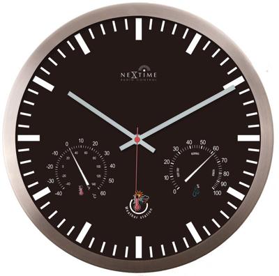 NeXtime ne-90513zw wandklok + weerstation 25cm zwart rc aluminium